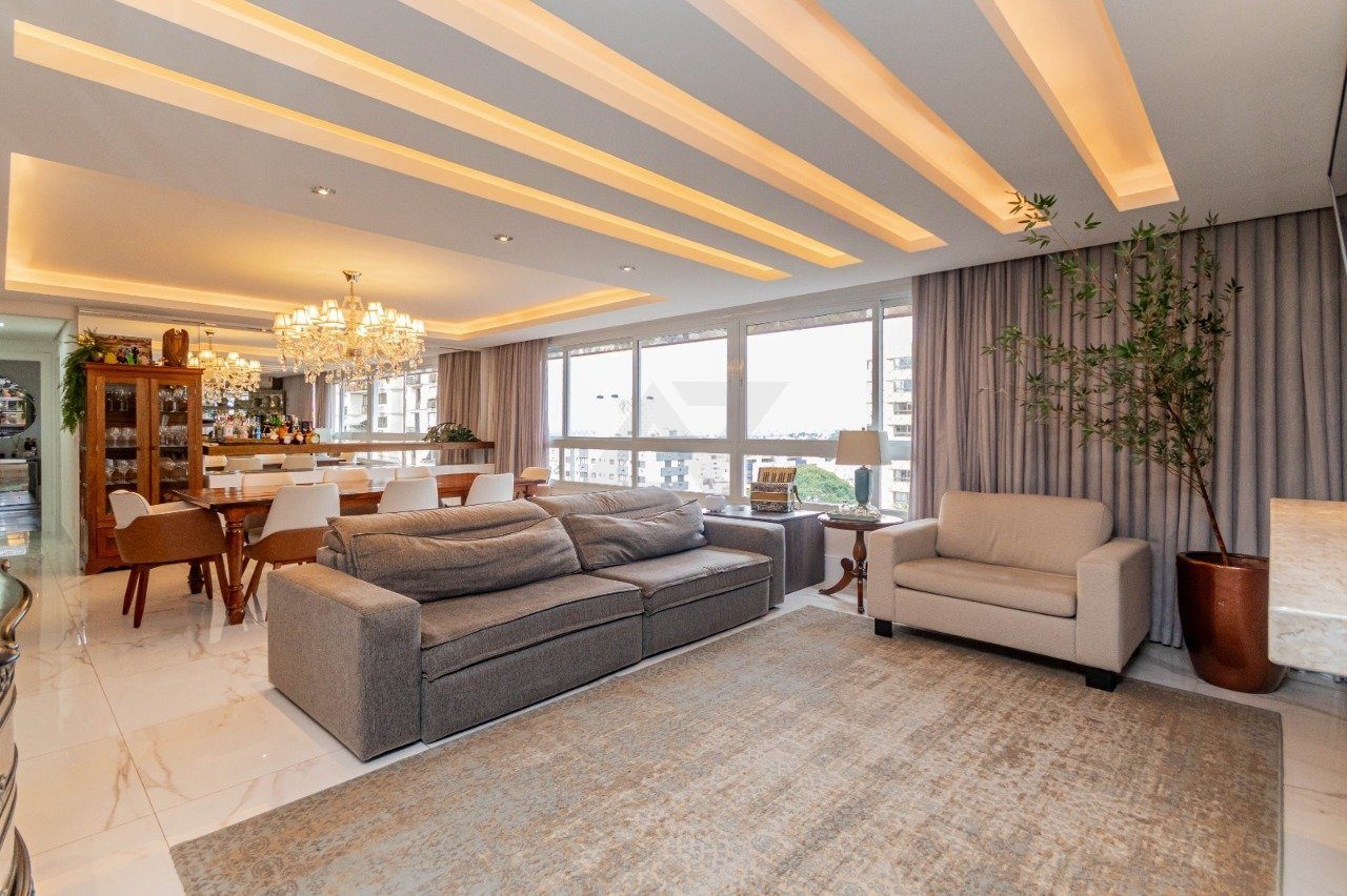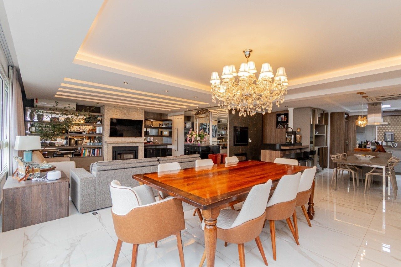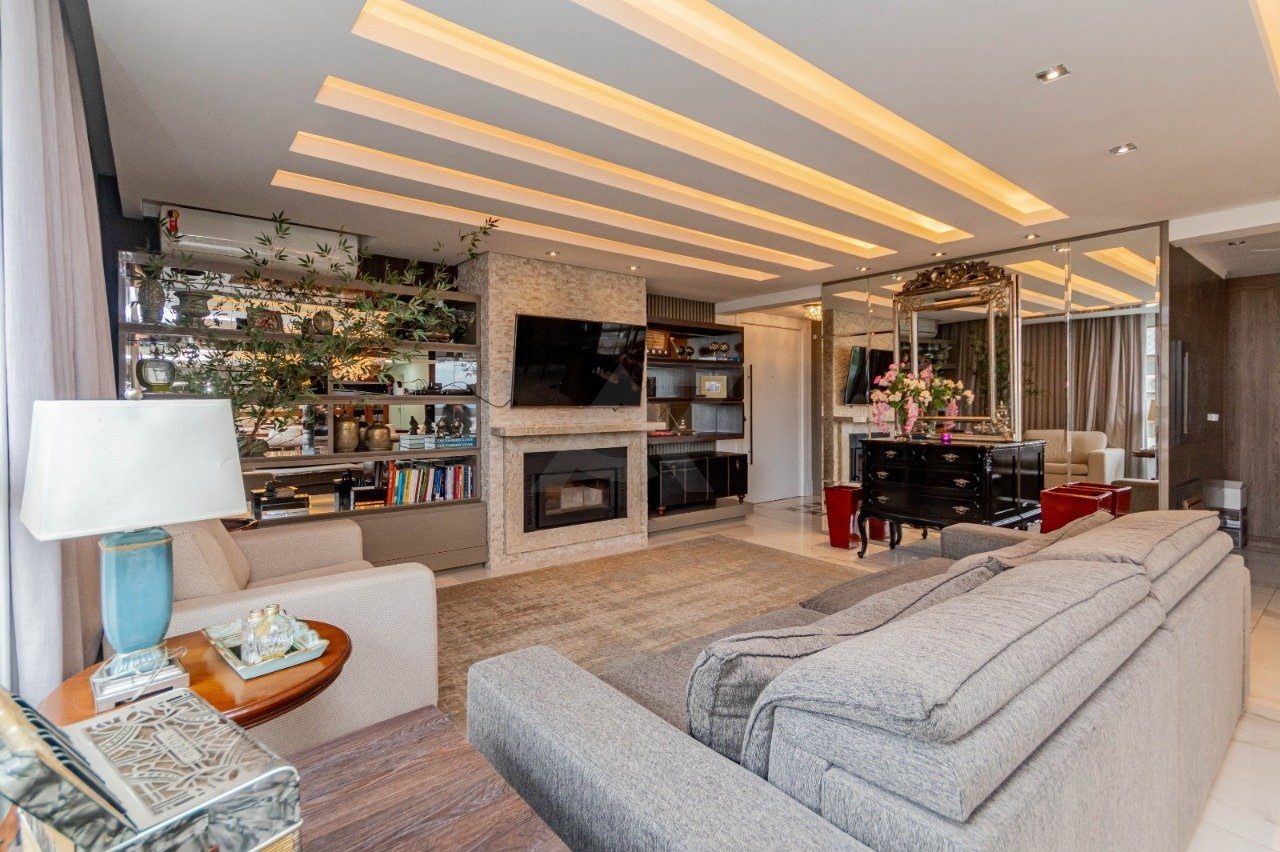 Apresentamos e oferecemos esse imponente apartamento com living de 4 ambientes bem definidos: estar com lareira e lavabo, sala de jantar, cozinha integrada ao living com ilha de cozimento, espaço gourmet com churrasqueira Todos os banheiros com ventilação direta. Area de serviço separadas.
