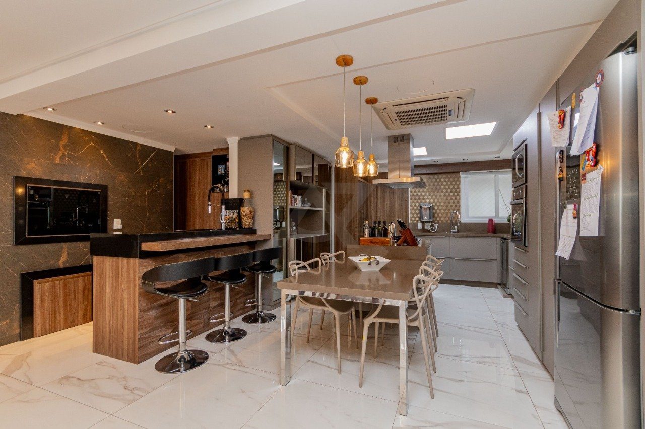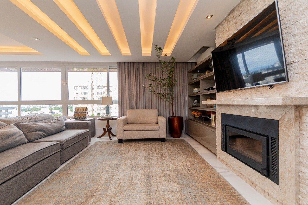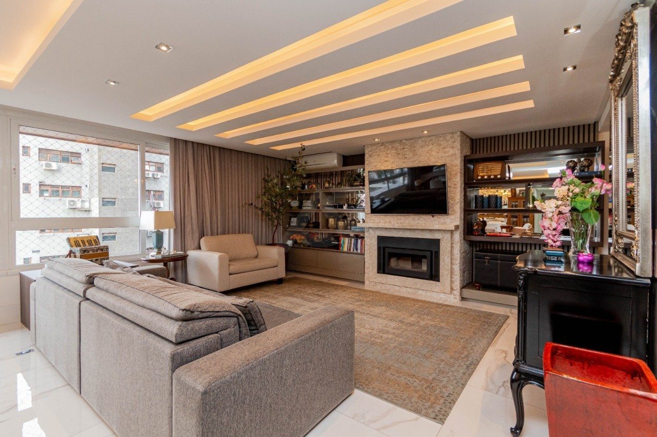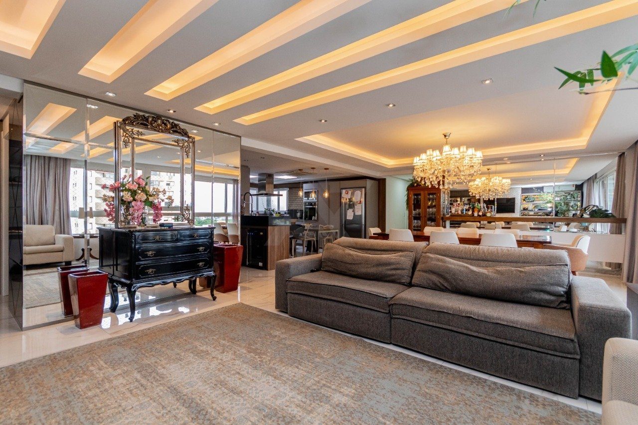 Apresentamos e oferecemos esse imponente apartamento com living de 4 ambientes bem definidos: estar com lareira e lavabo, sala de jantar, cozinha integrada ao living com ilha de cozimento, espaço gourmet com churrasqueira Todos os banheiros com ventilação direta. Area de serviço separadas.