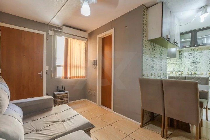 Ótimo apartamento de 02 dormitórios, living, banheiro, cozinha e área de serviço conjugada. Condomínio com portaria 24 horas, estacionamento rotativo, salão de festas, playground, quadra de esportes e zeladoria. Aceita financiamento e FGTS.