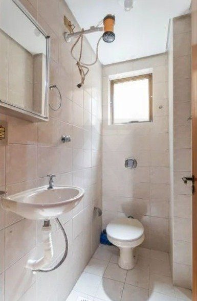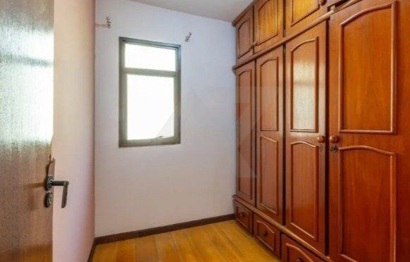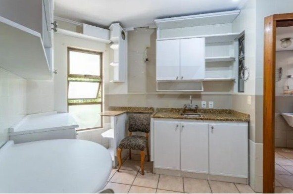A cozinha está equipada, os quartos possuem roupeiros embutidos e um deles conta com sacada voltada para os fundos do edifício, o que proporciona mais privacidade, silêncio e boa ventilação. As esquadrias em madeira nobre, bem conservadas, contribuem para o conforto acústico dos ambientes. O apartamento está parcialmente mobiliado e inserido em um empreendimento de alto padrão.