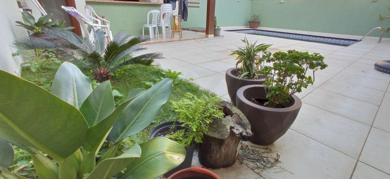 Amplo pátio cercado, com cerca elétrica e sistema de alarme, com piscina e quiosque com churrasqueira. Central de gás com 3 botijões.