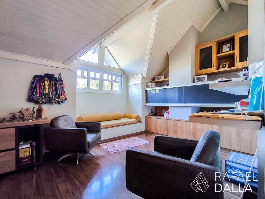 Esta Casa em condomínio com infra estrutura de lazer de clube recebeu projeto de interior feito por arquiteto com máxima qualidade de revestimentos e aproveitamento dos espaços! Ao entrar na casa no piso principal estão a sala de estar com lareira, sala de jantar, cozinha com armários, lavandeira, lavabo e um espaço Gourmet com churrasqueira contíguo ao pátio externo. Um área social integrada sendo um convite para descontração e relaxamento do lar! No segundo pavimento ficam os 3 amplos dormitórios, com destaque para Suite que tem um espaço invejável! Com armários sob medida, closet e hidro. Piso todo em laminado e ótima incidência solar. No sótão temos um espaço muito amplo cerca de 23m2, que pode ser configurado como mais uma suite ou espaço alternativo de acordo com a conveniência da família, neste cômodo tem também um deposito bem organizado e útil. A garagem coberta para 3 carros tem ainda um segundo deposito que atualmente serve de adega. Agenda ja sua visita e não deixe passar esta oportunidade de morar em um Condominio com toda segurança, lazer em uma unidade impa. Preço e disponibilidade do imóvel sujeitos a alteração sem aviso prévio.
