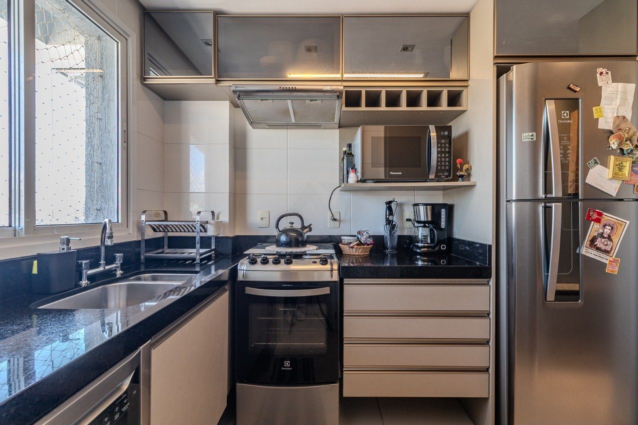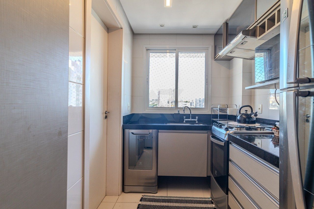 O prédio conta com elevador, academia, piscina, salão de festas, churrasqueira e playground.