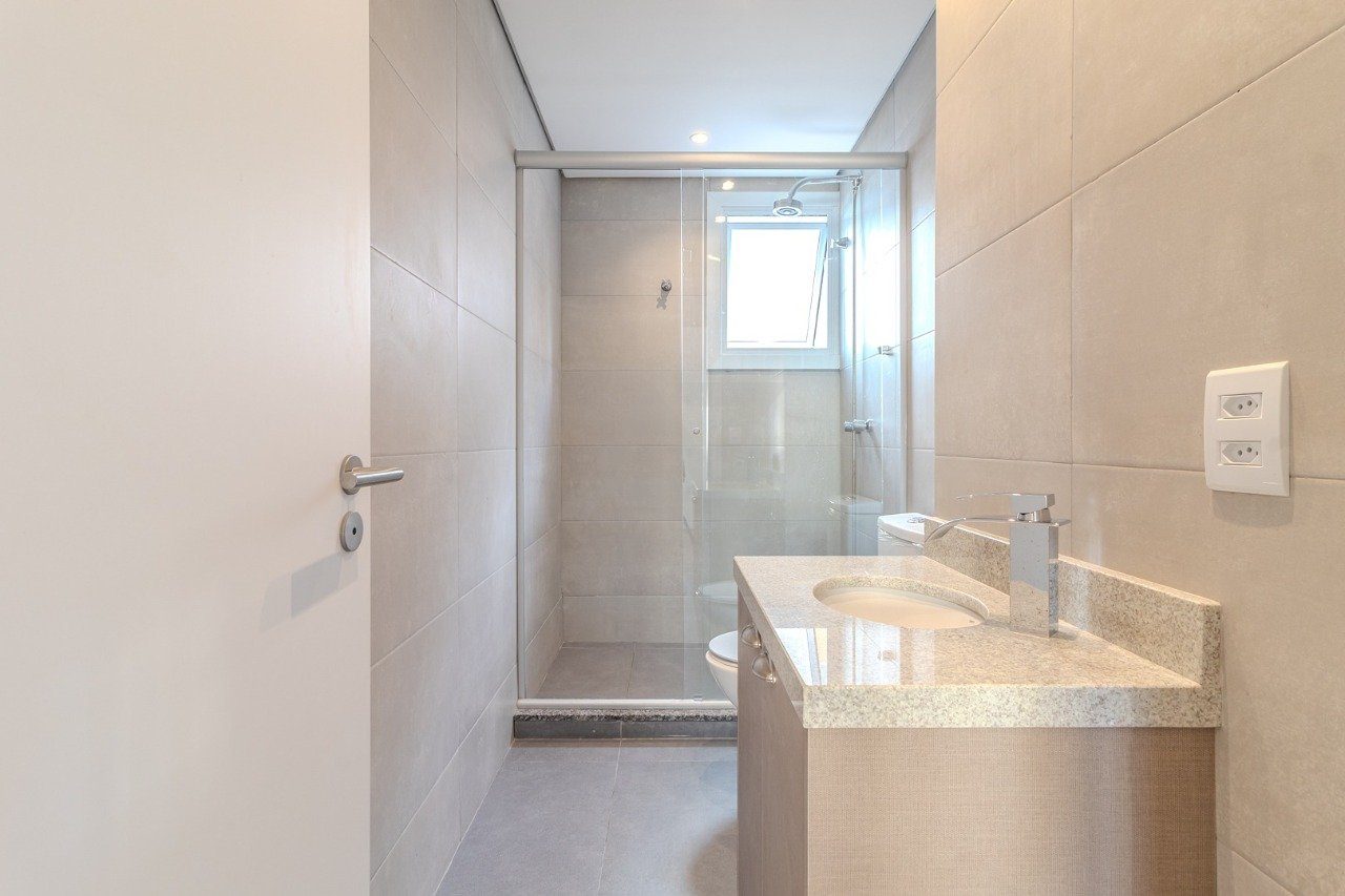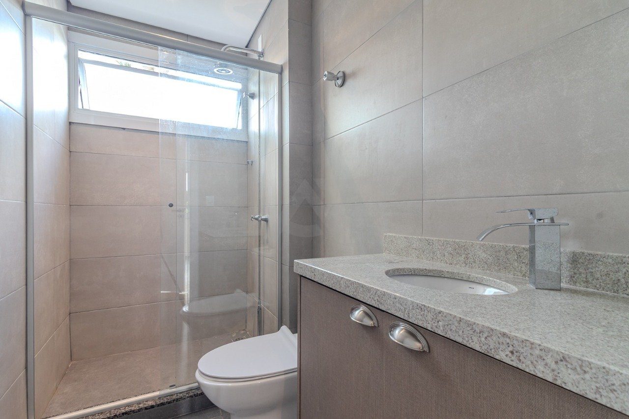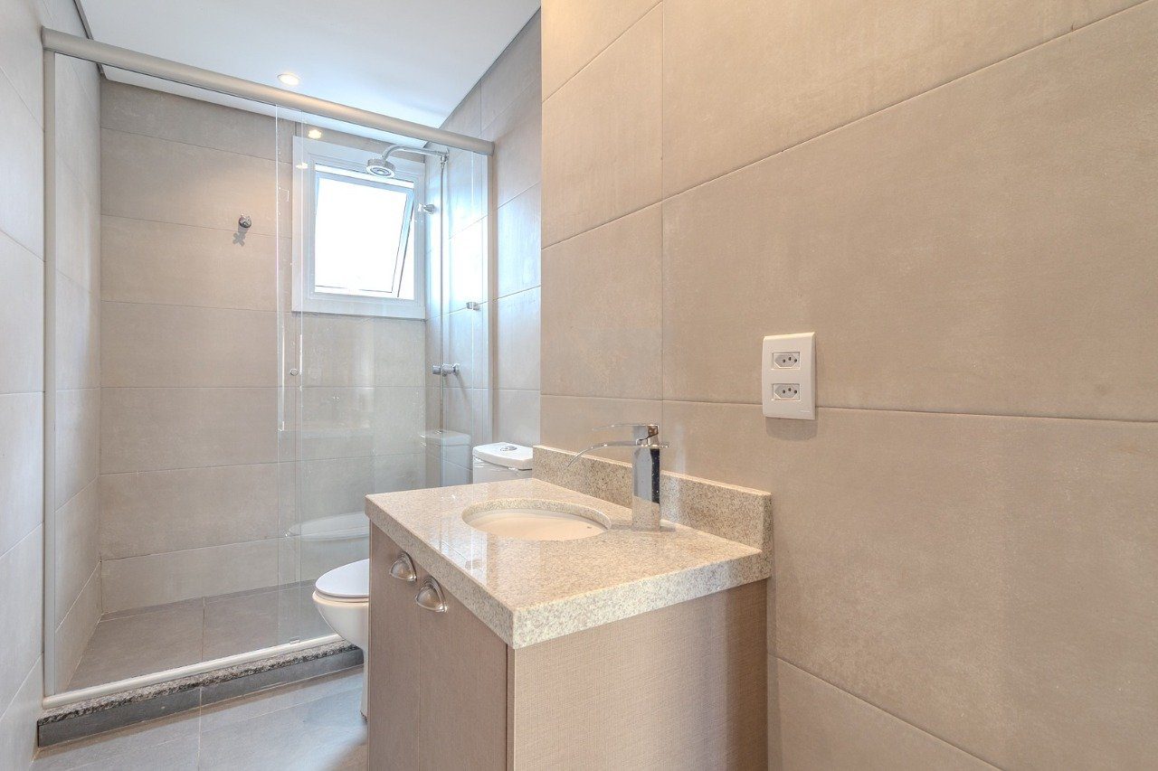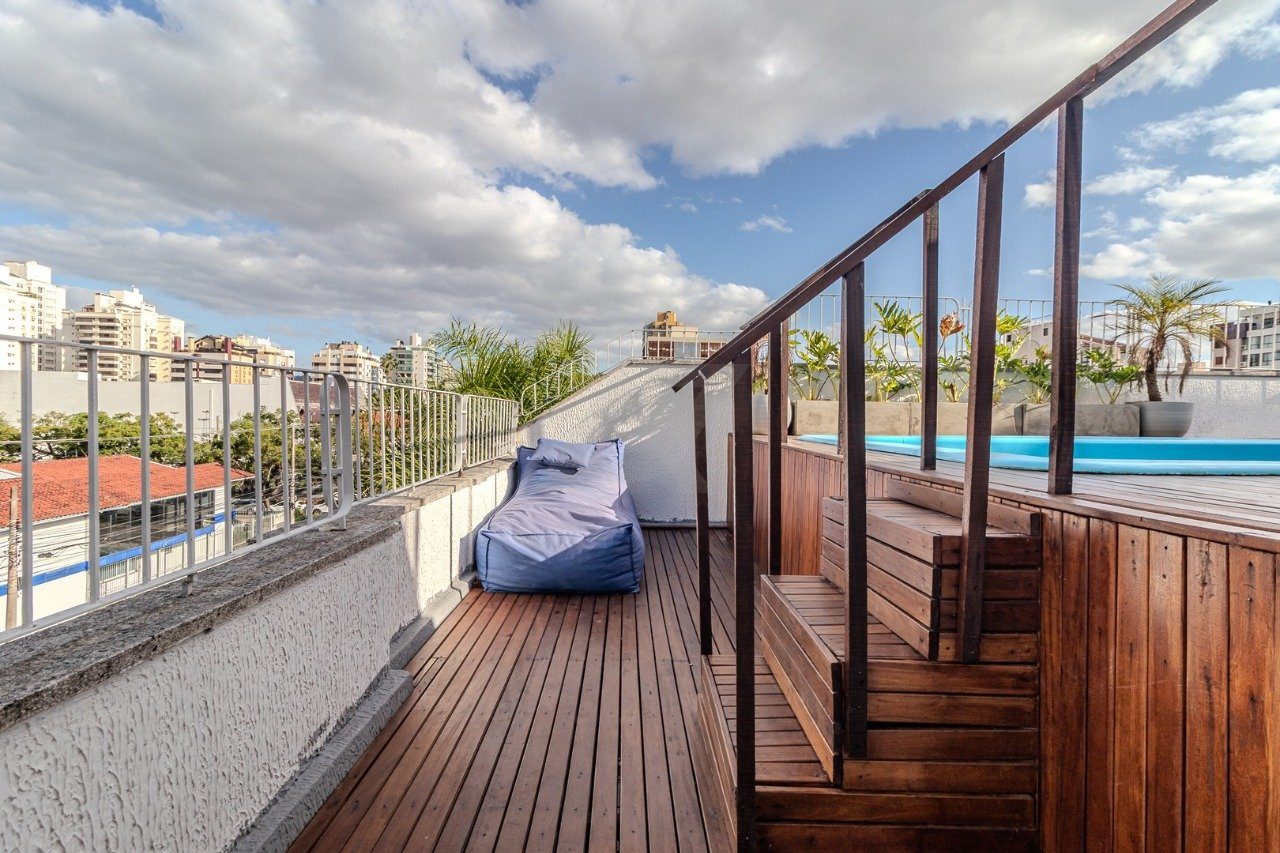 No andar inferior, estão a cozinha com balcão integrado, a sala de estar e três dormitórios, sendo duas suítes. A suíte principal conta com banheira de hidromassagem para duas pessoas, ideal para momentos de relaxamento.
