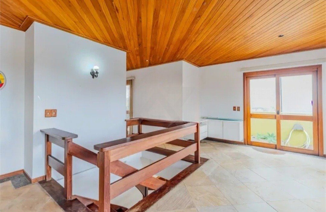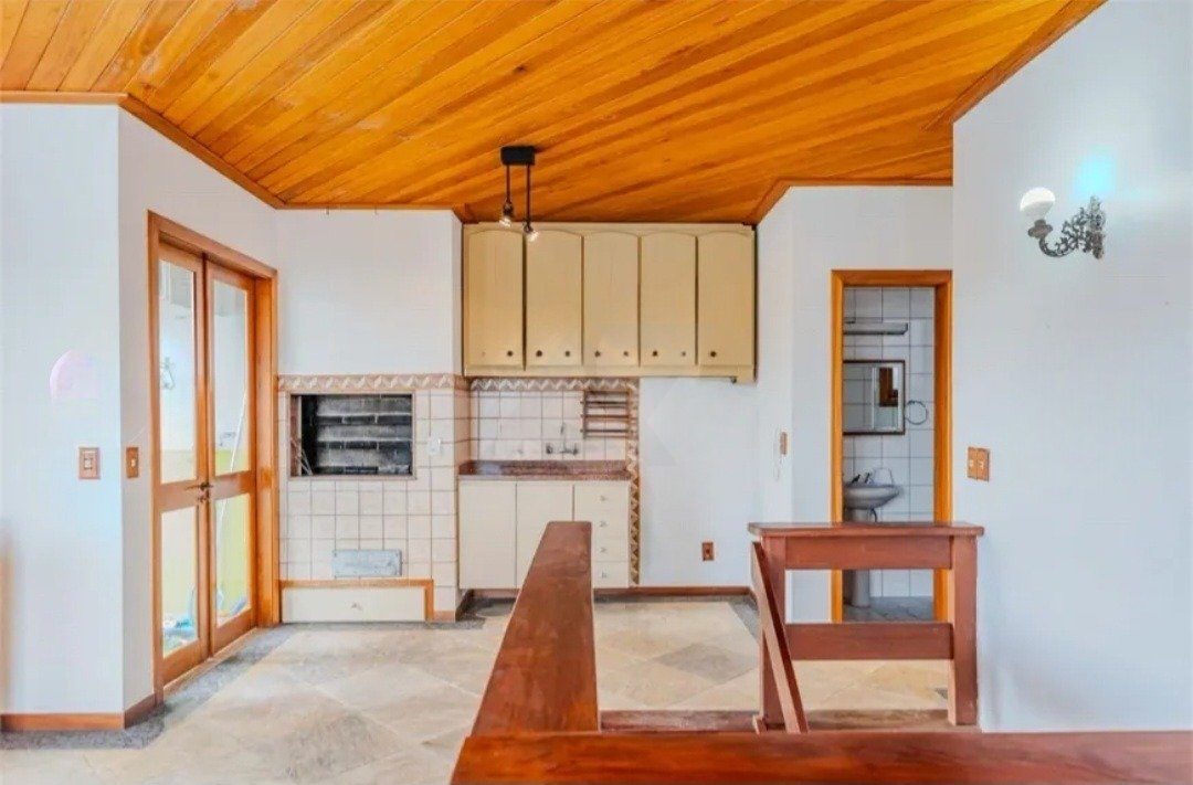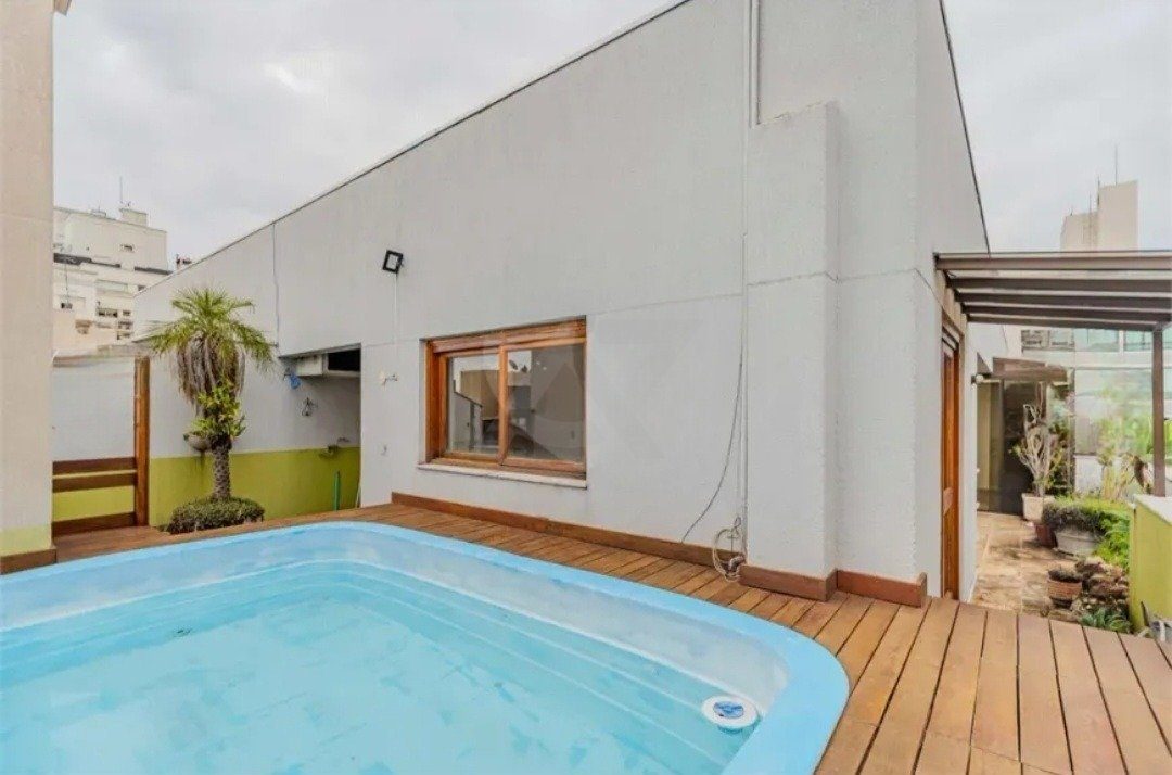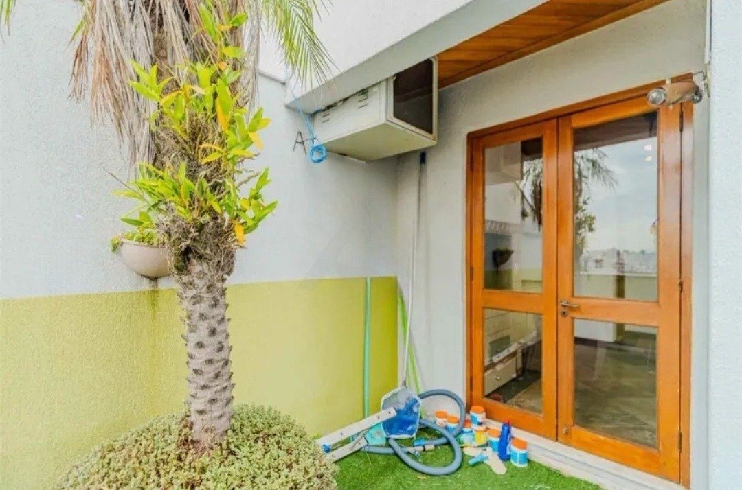 Na parte superior; um quarto, 2 banheiros, cozinha, churrasqueira e dois terraços bem ensolarados, sendo um deles com piscina.