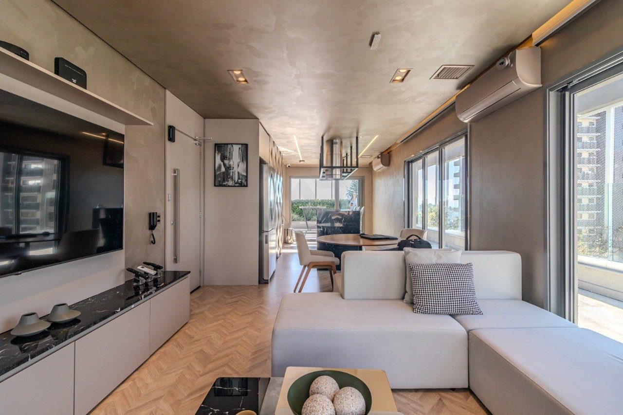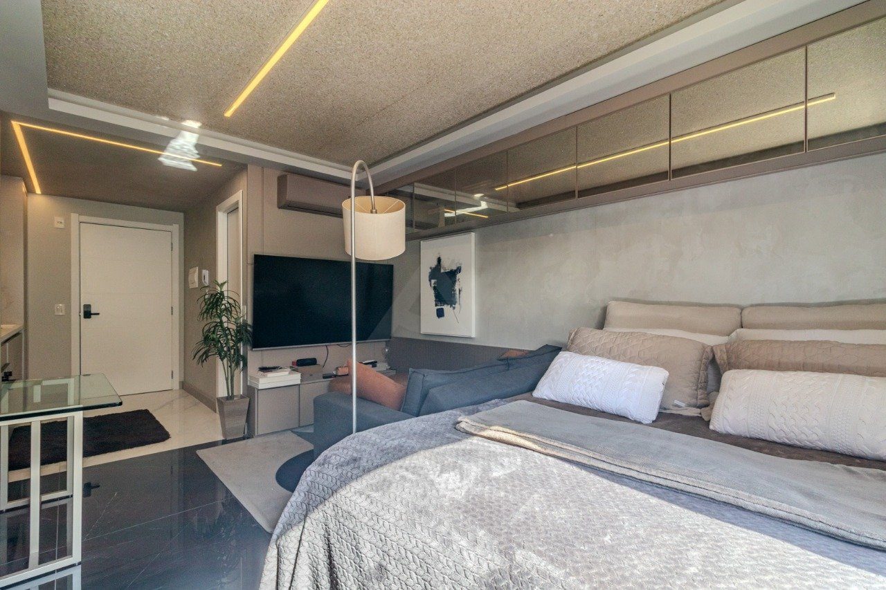 Em um empreendimento completo e bem localizado, este studio é ideal tanto para morar quanto para investir. Com decoração assinada pela Cyrela Goldztein, o imóvel conta com cozinha planejada, banheiro completo, mesa de jantar, sala de TV e cama, além de armários sob medida que otimizam o espaço com elegância. A unidade ainda dispõe de vaga de garagem rotativa, agregando praticidade ao dia a dia.